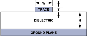 H是從地平面到信號(hào)線的距離,W是線寬度,T是線厚度;所有尺寸單位為mils。εr是PCB材料的介電常數(shù)。