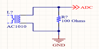 將變壓器和電阻器并聯(lián)連接后,您可以簡單地將結(jié)構(gòu)的一端連接到地面,將另一端連接到ADC以獲得讀數(shù)。但是,這可能是一個(gè)非常糟糕的主意。我僅介紹此原理圖,以展示您可以看到電流互感器工作的最簡單方法。